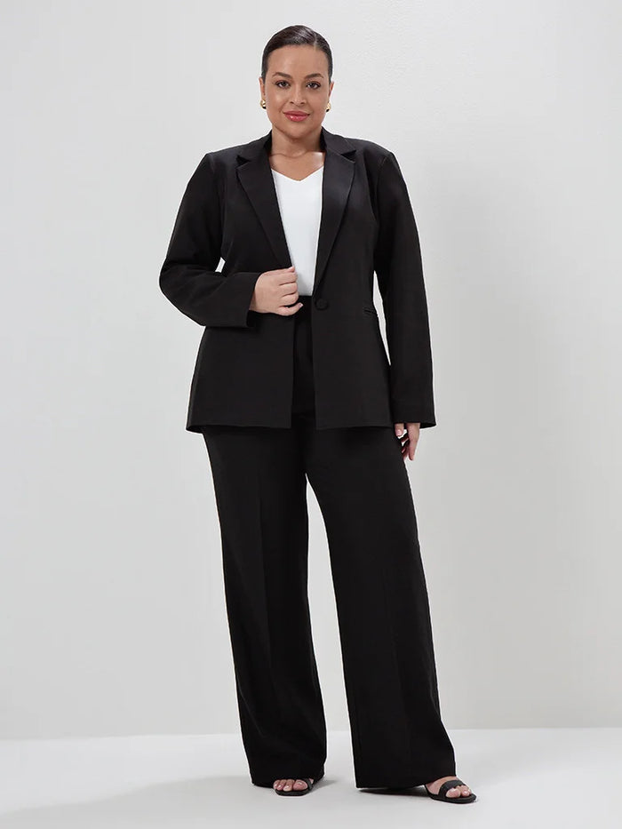 Blazer Intermediário em Alfaiataria Plus Size Preto Samila