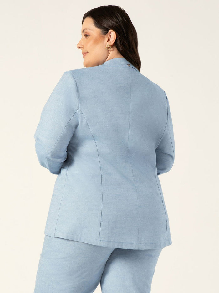 Blazer Intermediário em Oxford Plus Size Azul Claro Josefina