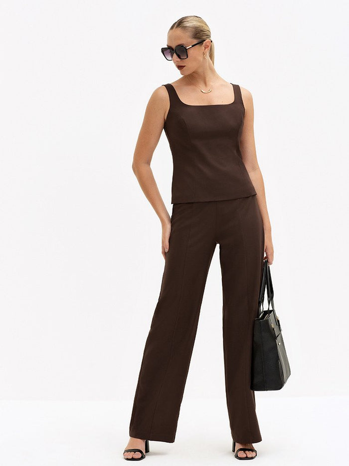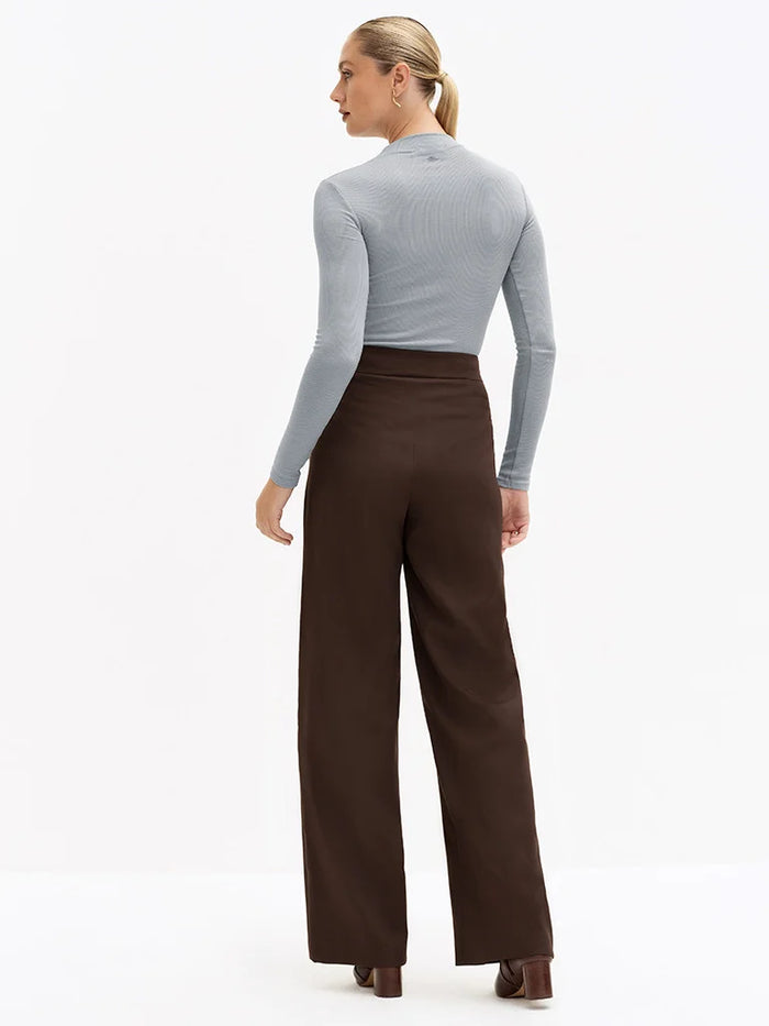 Calça Wide Leg de Alfaiataria Marrom Brienne