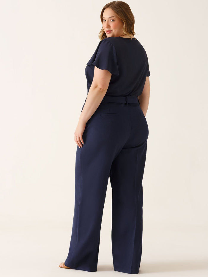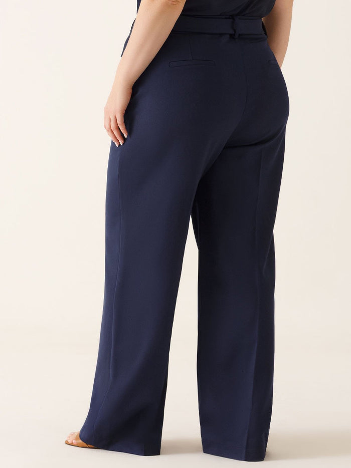 Calça Wide Leg de Alfaiataria Plus Size Marinho Índigo Cora