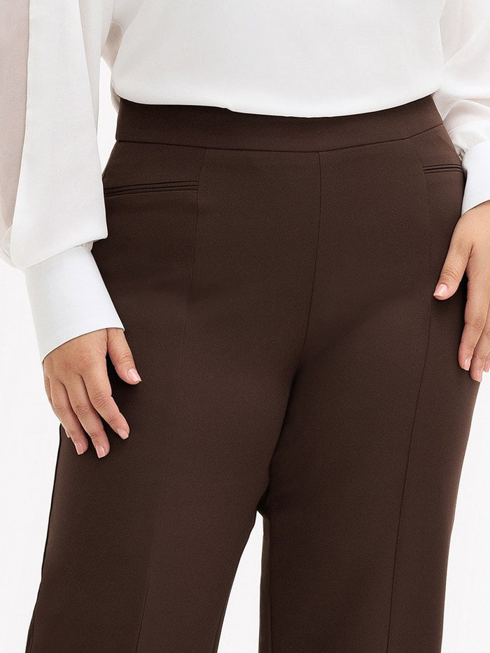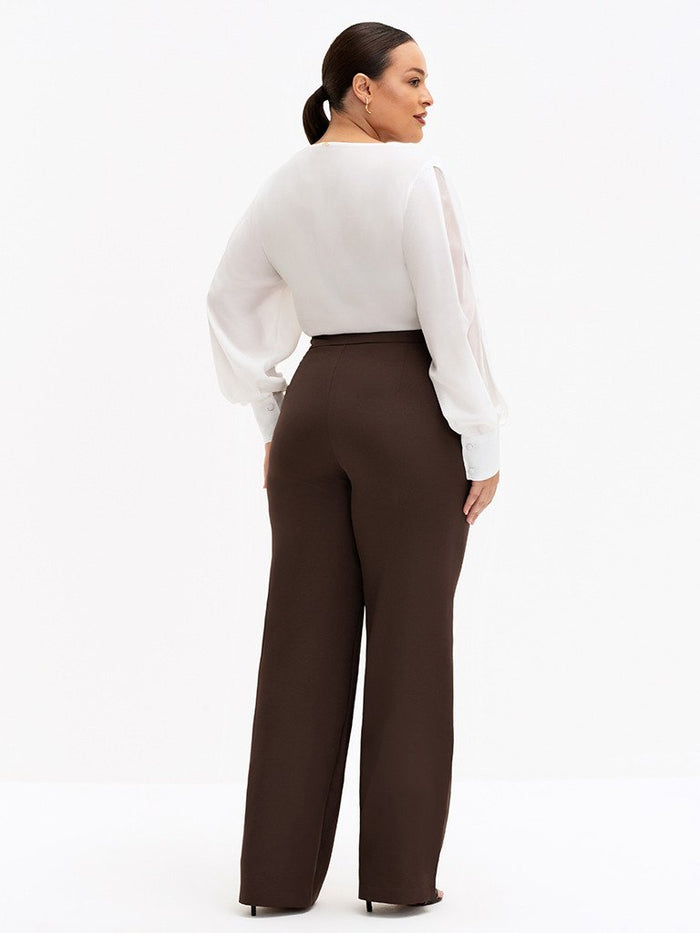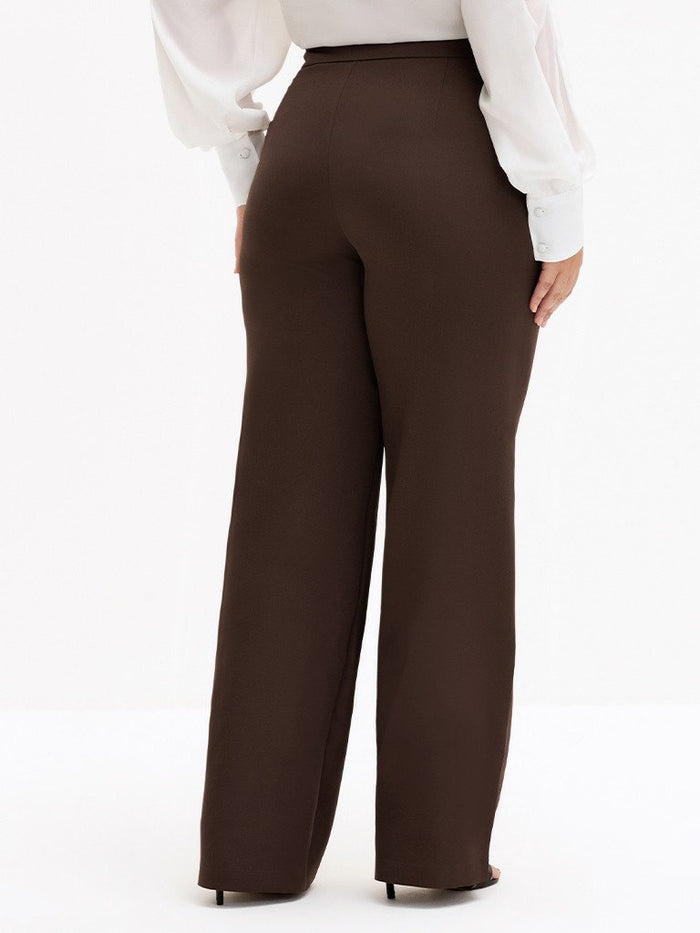 Calça Wide Leg de Alfaiataria Plus Size Marrom Cibele