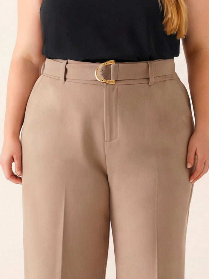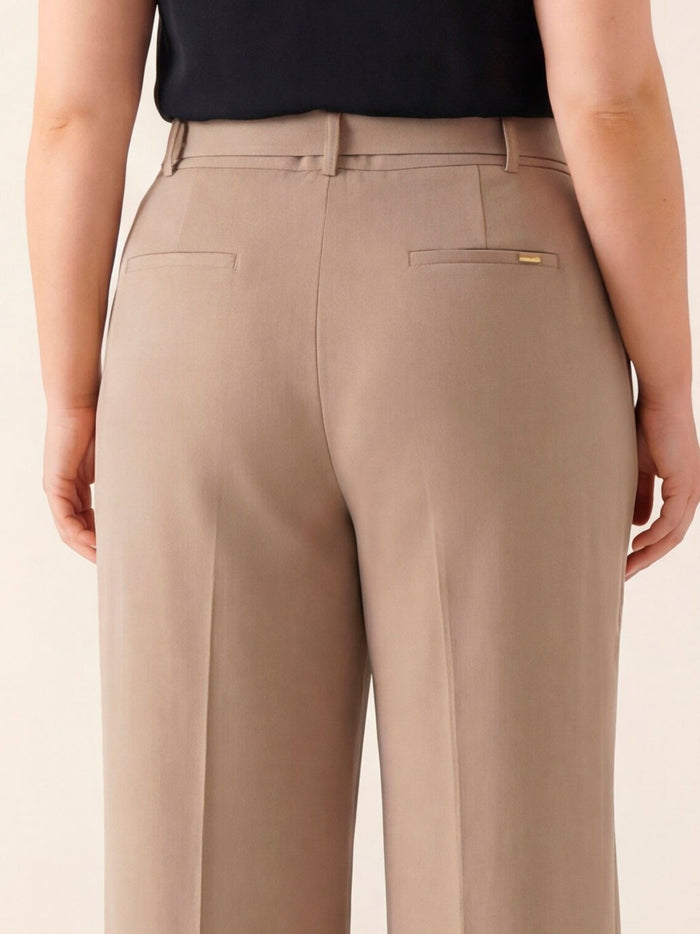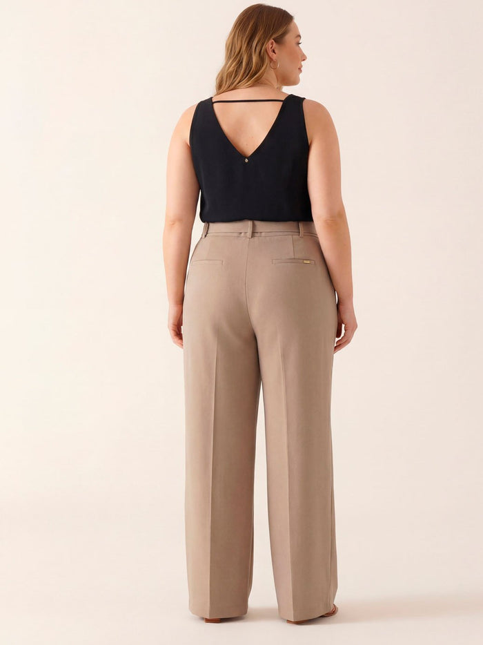 Calça Wide Leg de Alfaiataria Plus Size Mocha Mousse Lorde