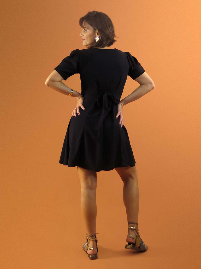 Vestido curto, com caimento confortável e corte acinturado. Possui um laço atrás que permite regular deixando a peça mais soltinha ou mais justa e acinturada. 💫 As mangas dão um charme todo especial à peça. Vai de um passeio para uma ocasião mais especial, com salto, tenis ou rasteira ele te acompanha em qualquer lugar! Me fala se não é maravilhoso?! 😍